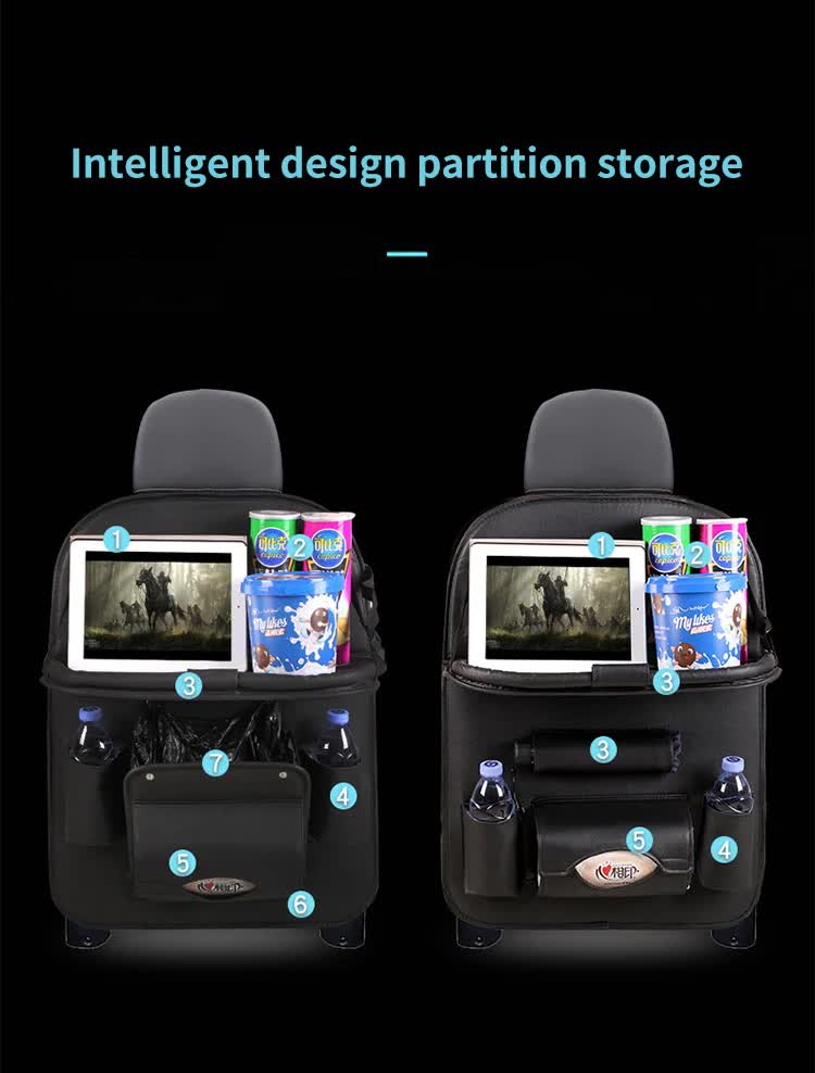 Keywords: Car Backseat Organizer, Foldable Tray Table, Car Trash Bag, Leather Car Organizer, Car Storage, Multi-functional Organizer, Car Seat Organizer, Travel Organizer, Car Accessories, Backseat Storage