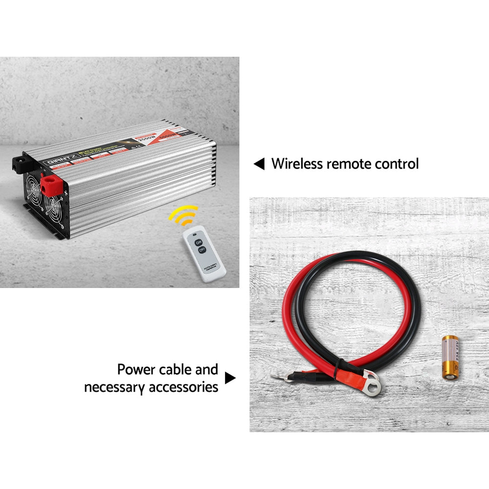 Giantz Power Inverter 12V to 240V 2500W/5000W Pure Sine Wave Camping Car Boat